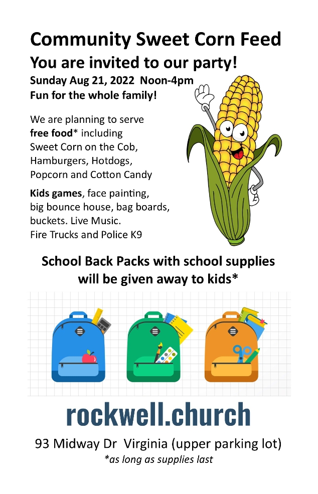 At the end of summer we had a Sweet Corn Feed party and gave away around 200 kids back packs full of school supplies in 2022. It was a fun and well attended event and the church people did a great job serving the community.