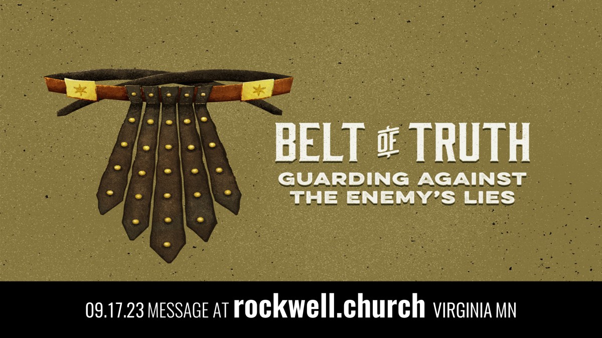 We are looking at the “Full Armor of God” passage from Ephesians 6. The soldier’s belt helped keep his loose clothes strapped securely to his body so they would not get in the way during the battle. It is called the belt of truth. Jesus says He is the way, the truth, and the life (John 14:6). The Christian who is secure in the truth will be able to stay standing. While Satan knows that we are protected by Christ, he also knows that he can distract us or even trip us up with lies and counterfeits. Come to Rockwell Church this Sunday to be encouraged that the truth that holds us together and keeps us from falling for those lies is the Word of God, rightly applied. We look forward to seeing you at 10:15am Sunday at 93 Midway Drive on the borders of Virginia – Eveleth. Come early for 9am Sunday School for all ages.