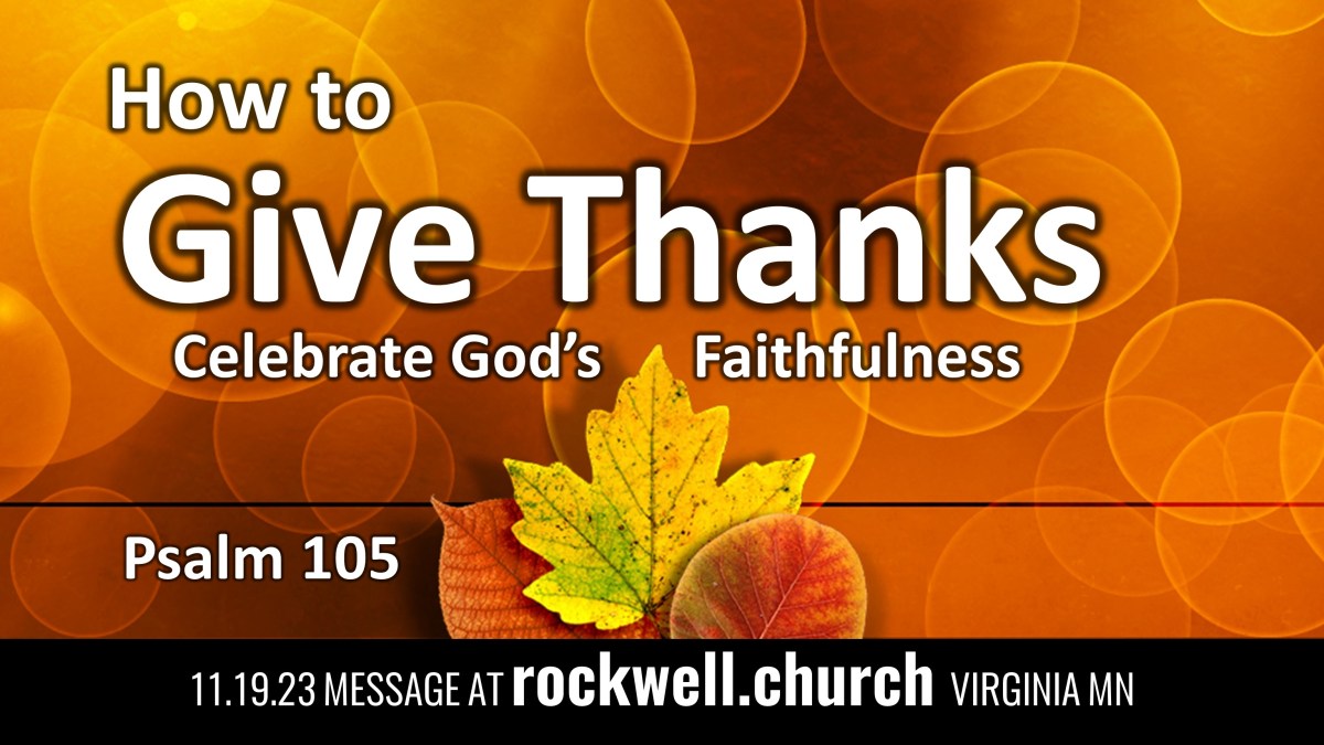 How do we give thanks and praise in way that pleases God and encourages the people around us? Psalm 105 has some great action steps that we are going to look at this Sunday at Rockwell Church. Come join us at 10:15am to be encouraged to give thanks & celebrate God’s faithfulness.