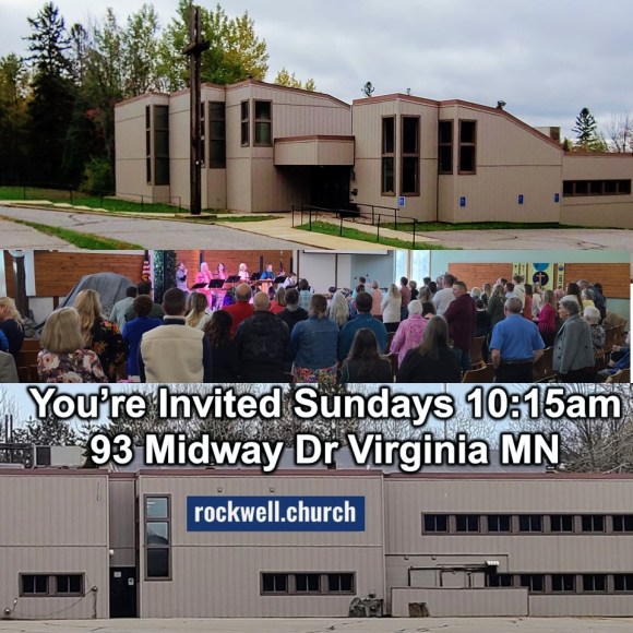 Rockwell Church is a Christ centered church family of about one hundred people. Our church is easy to find on Highway 53 at the Virginia and Eveleth border near the Rock Ridge School baseball fields.
