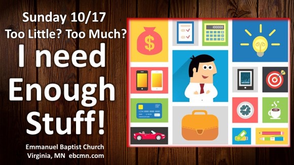 - Sermon: Too Little? Too Much? I Need Enough Stuff! (1 Tim 6)